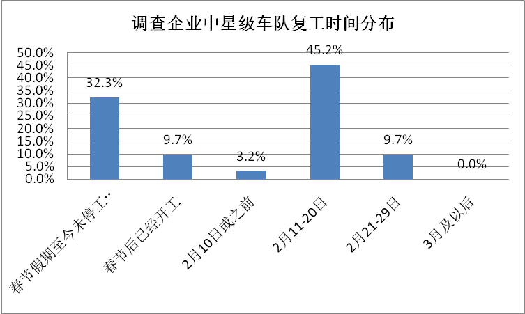 总体来看,公路货运行业复工复运水平较低,特别是吸纳就业较多的零担运输和零担货运市场基本停滞,导致整个生产制造供应链处于“断链”状态,已经出现企业由于原材料运输供应不上复工后停产现象,严重影响经济稳定有序运行。