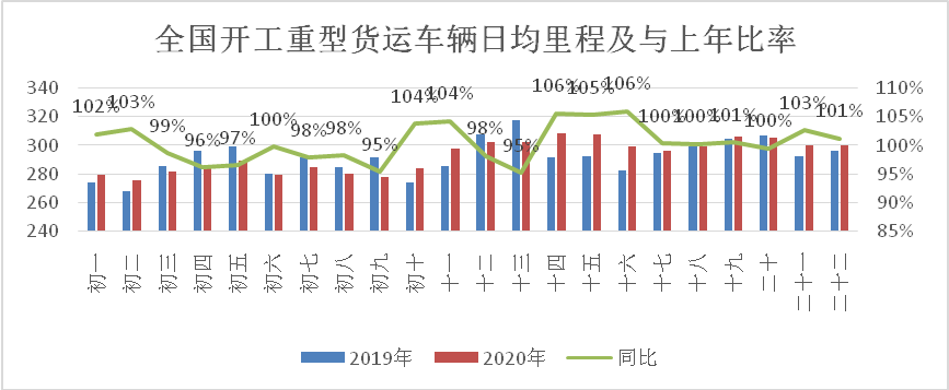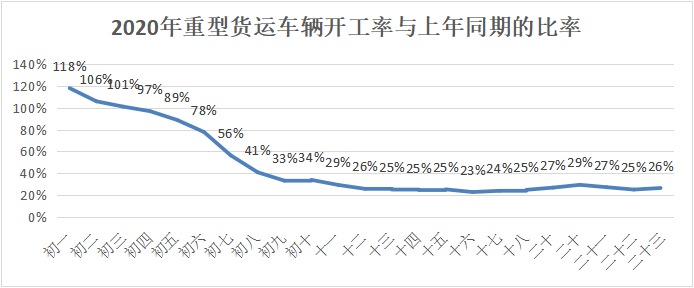 大数据显示,行业车辆开工率大幅低于往年。据全国道路货运车辆公共监管与服务平台数据分析显示,全国货运车辆节后开工形势不佳,2月8日以来全国12吨以上重型货运车辆开工率仅为往年同期的四分之一。2月10日以后,随着企业加快复工复产,行业开工率小幅回升,接近往年的三成左右。