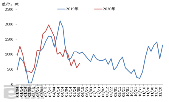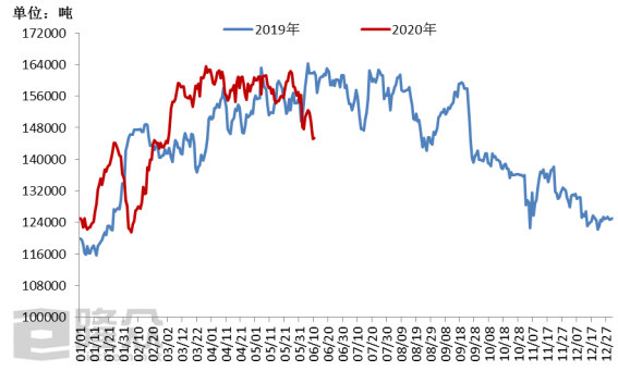 5月底至今,因为计划检修或者装置故障影响的企业次数不下十次,日产更是由15.8万吨上下降至14.5万吨左右,较去年同期而言低了1.5万吨左右的水平,在农需旺季的时间段着实是一个硬性利好。这其中的检修,中煤、富岛持续的时间较长超过一个月,其他的检修少则一两日、多则5-10日,预计在本月20日前会陆续恢复生产。那么可以看到的是,内需转弱的同时,供应量是在恢复中。并且从年初到今日的尿素累积产量,比同期是增加60-70万吨的水平,供应量相对充足,只不过当前季节来临时略显紧张。