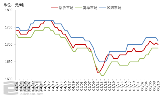 看完供需最后再回到价格层面,以主流地区市场价格为例,菏泽、临沂、沭阳正常价差水平20元/吨,目前来看还算在合理空间内,不过已经略见区域间的价格松动苗头。苏北、菏泽目前是农需支撑、临沂则工需持续,那么随着时间推移,苏北、菏泽的农需势必会逐渐转弱,前期因此吸引的货源也会转移销售流向,退而求其次进入临沂市场,而临沂当前按照到货量和需求量来看,基本处于平衡态势,供需过剩情况并不明显。一旦外围区域转弱,临沂的到货量势必会增加,并且目前的价格水平,对于还在执行前期订单的商家而言还有一定的利润空间,那么随着市场货源的增加,而需求还是维持前期的情况下,临沂价格也难再企稳,很有可能成为尿素的“众矢之的”。