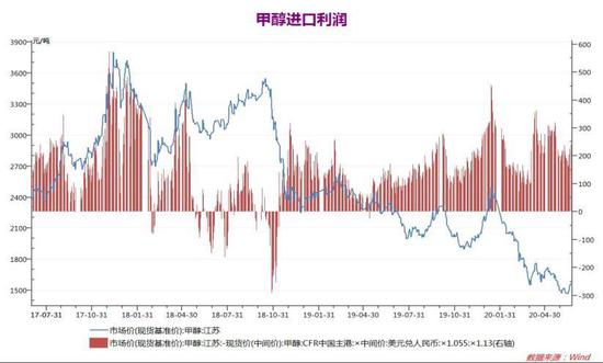 需求端,传统下游方面,虽然中国在疫情下以较快的速度恢复生产,但全球主要经济体复苏前景不容乐观,国内经济必然受到波及。即便下半年部分甲醇传统下游即将进入需求旺季,但对甲醇需求增量有限。烯烃需求方面,甲醇制烯烃利润整体较为可观,目前内地和沿海烯烃企业开工负荷均较高,而三季度甲醇下游暂无新增产能需求,二季度末下游烯烃厂家整体的原料库存均相对高位,这也意味着对甲醇需求缺乏进一步增长的预期。